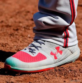 Under Armour has locked Soto down for the time being. Soto rocks Under Armour Yard cleats, Harper Pro batting gloves, and even UA Tuned sunglasses. At the plate, Soto swings either a Rawlings OA1 birch or Old Hickory AJ25 maple bat. Juan Soto’s glove is a flashy one. He elects to use a Wilson A2000 or Wilson A2K 1799 in a variety of Nationals-specific color combos.