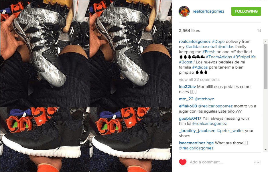 Carlos Gomez took to Instagram recently to give us all a sneak peak of a new adidas baseball model. Reminiscent of the Springblade Pros Upper and what looks to be a brand new plate. The other shoe in the post is the adidas Originals Tubular X and is available now, however I recommend the Primeknit versions to the regular mesh versions, albeit they retail at a higher price.