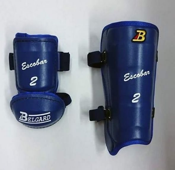 Bryce wears a Belgard leg guard with Under Armour branding. Notice last year’s version with Belgard branding (blacked out), and 2016’s with Harper’s personal logo. You gotta admit, it looks better now. Belgard has some big names, including Robinson Cano and Nelson Cruz. Shop Belgard at the link.