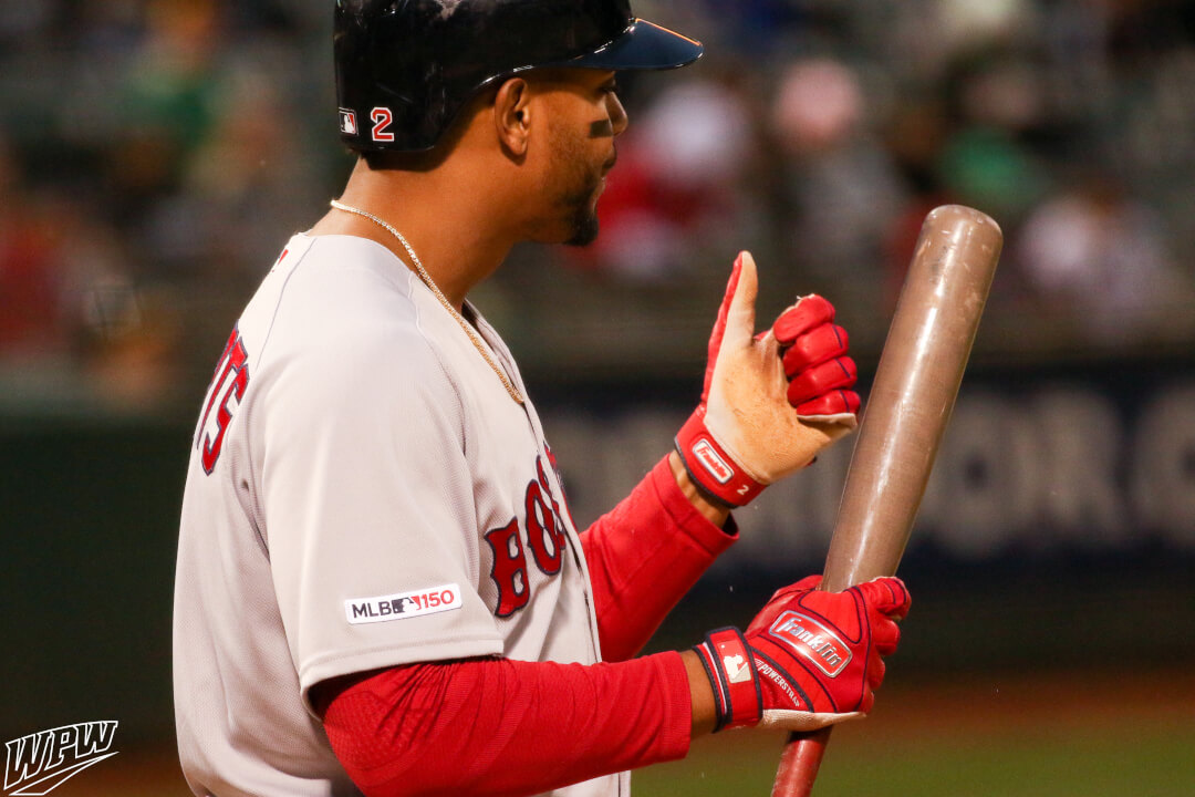 Xander Bogaerts wears Franklin’s latest style, the Powerstrap, which just does it for me. The Powerstrap style is now available for customization, and you can get a nearly identical version to Bogaerts’ away reds for $50-$55.