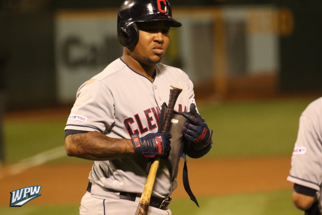Jose Ramirez wears Franklin CFX Pro batting gloves in a variety of colorways that take advantage of the red and navy blue Indians colors. We built a similar version to the feature photo at the link for $45-$50 on FranklinSports.com.