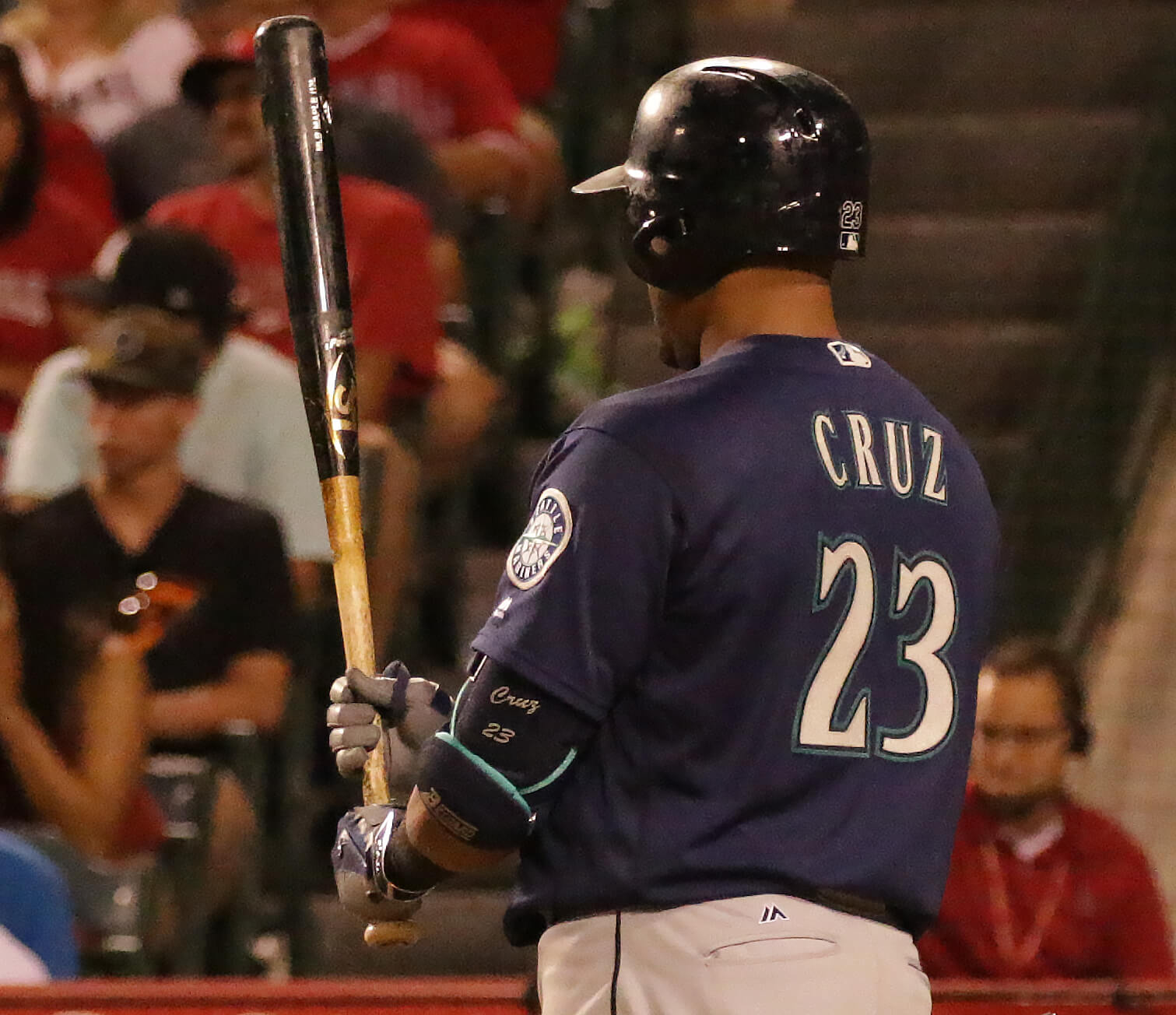 Cruz swings a number of bats and brands. Recently he’s been swinging a Louisville Slugger Prime I13, a power model, with or without a Lizard Skin grip. Available with options at the link, or customize your own on Slugger’s excellent custom builder. Cruz swings a club, 35 oz, 32.5 inch.