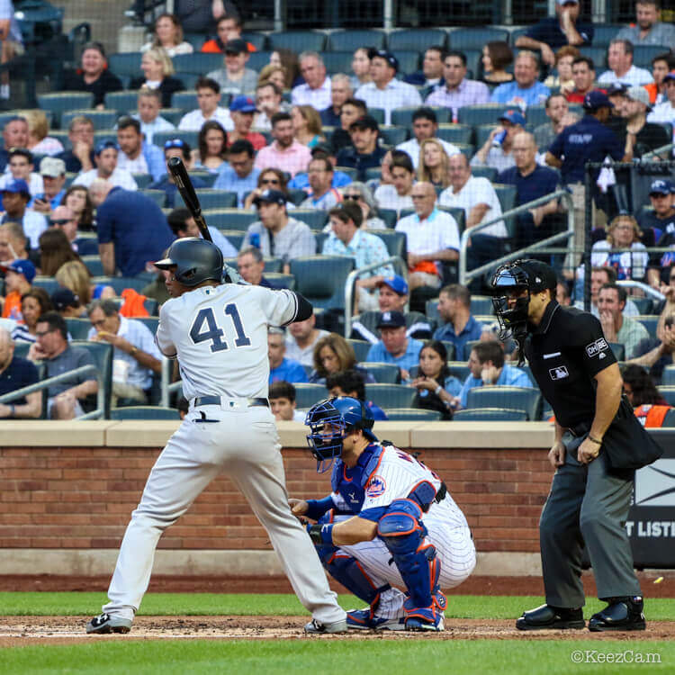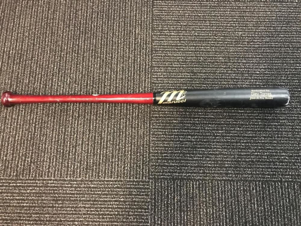 Baby Bomber Gleyber Torres swings a Jorge Soler model Marucci JS68 Maple at 34 inches, 31.5 ounces. He likely picked it up while he was a fellow prospect of Soler in the Cubs system. The JS68 is a variation of the CB15, available at the link.