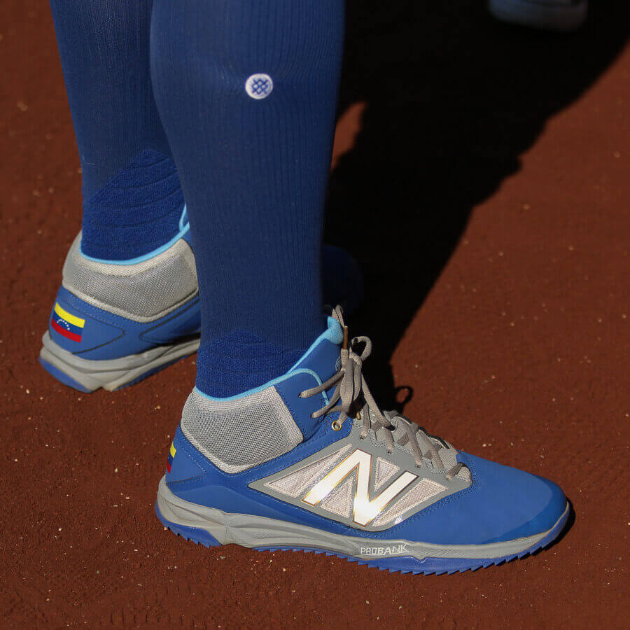 Salvy’s turfs are fully custom, including the mid-cut ankle, and the Venezuelan flags on the heel. His swag just doesn’t quit. Shop the 4040v3 turf at the link.