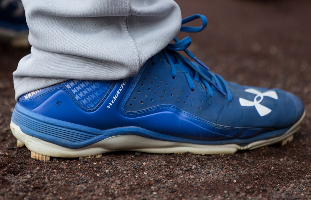 Eric Hosmer has been rocking the UA Yard ClutchFit BG’s like Kolten Wong, in several exclusive colorways, including grey/blue, white/blue, and blue/gold. There are several colorways available at the link.
