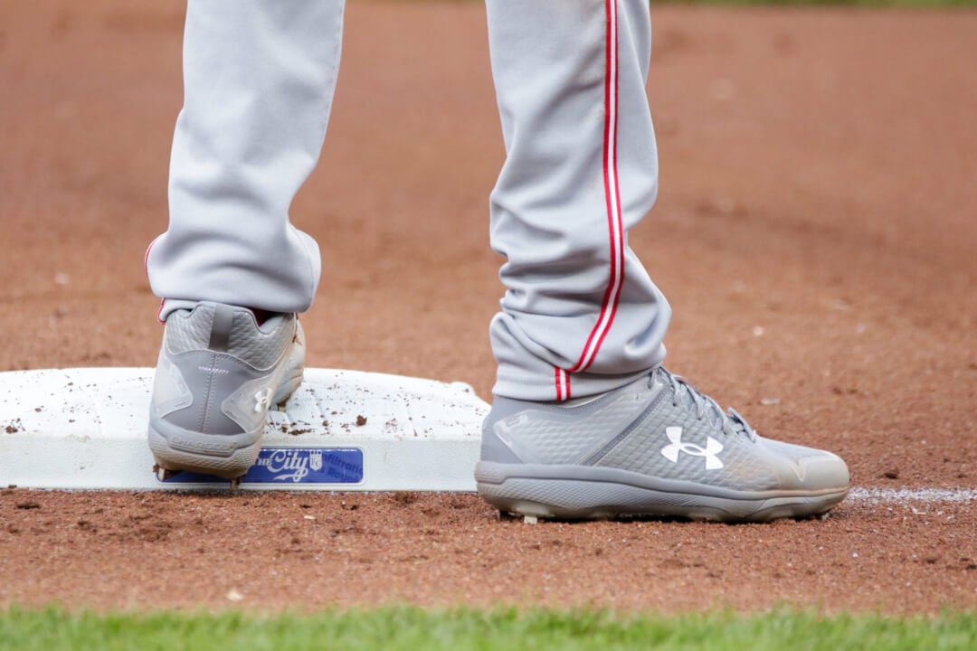 TJ Friedl, one of the Reds’ 2023 breakout players, rocks the newest product in Harper’s line of Under Armour cleats, the Harper 7s. These cleats have metal spikes but also feature 4 molded spikes on the bottom of the heel. Friedl wears the grey and white colorway that looks great […]