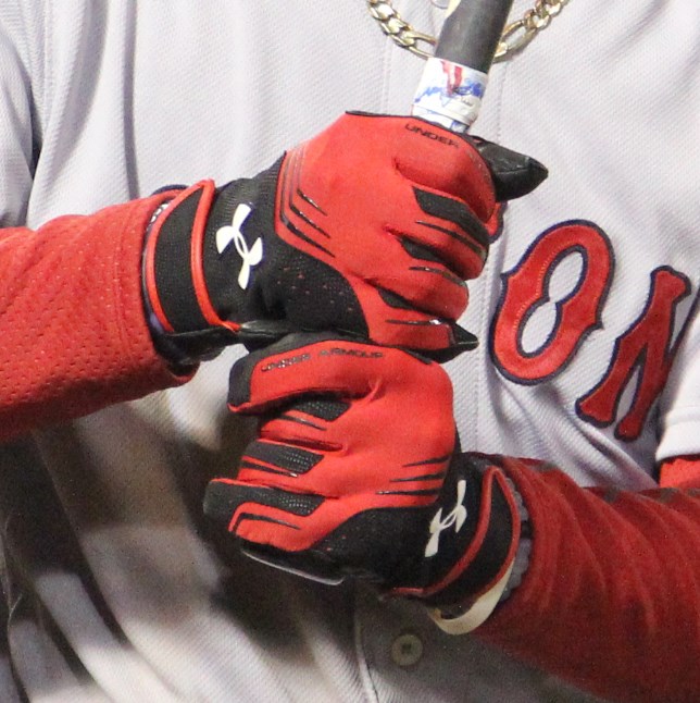 Bryce Harper seems to be messing around with his batting gloves, whether wearing just one, both, or none at all—its been changing pretty frequently. What hasn’t changed is his model, a custom version that he’s worn for a few seasons now. You won’t find these online.