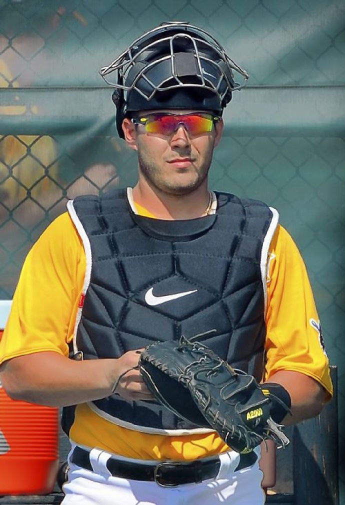 Tony Sanchez was also called up a few days ago to the Pirates because of the teams upcoming road trip against numerous lefties (he’s a right-handed hitter). Sanchez wears a simple set of Third Generation Nike gear. More specifically an Elite Chest Protector and a set of Elite Shinguards. He also wears a black Wilson A2000 M1 mitt which can be seen here. He also wears a visor on his titanium Nike mask. Read more about his promotion here.