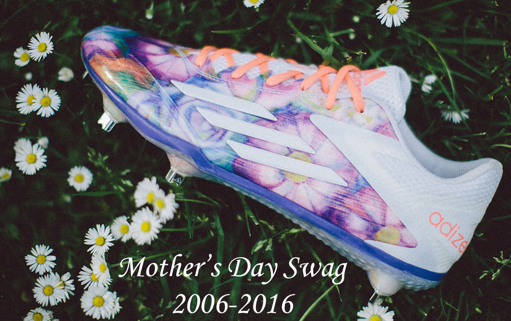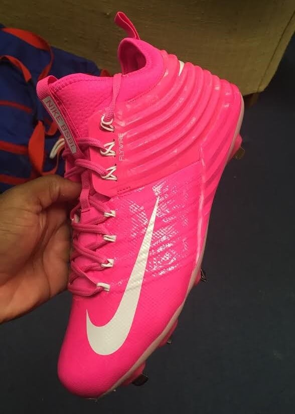 Another nice subtle design by Sole Revival. I see roses in the “N” and on the toe. Grandy told us at Spring Training this year that he likes a little flair, but not too much “because I’ve still got to catch the ball out there.” These 4040v3s walk that line beautifully. Curtis got his swag from mom.