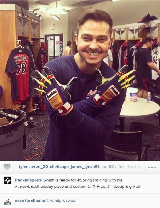 The Indians don’t call on him for it often, but Swish can still get it done in the outfield. He wears the Wilson A2000 1799 H-Web when they do. You can get one EXACTLY like Swisher’s at the link.