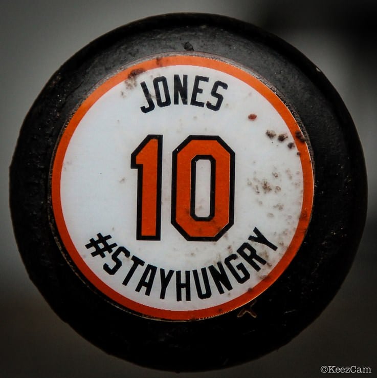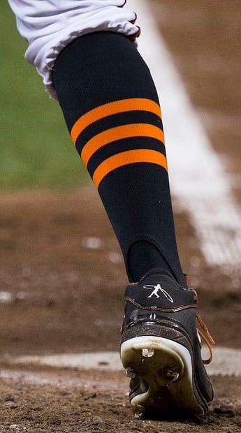 You might suspect that the cleats Adam Jones wears aren’t stock options. Jonesy loves the tiger print, and the tiger print loves Jonesy. He’s been wearing the MVP 2 for a while now, these are a new colorway with incredible attention to detail. Photos: @GeminiKeez
