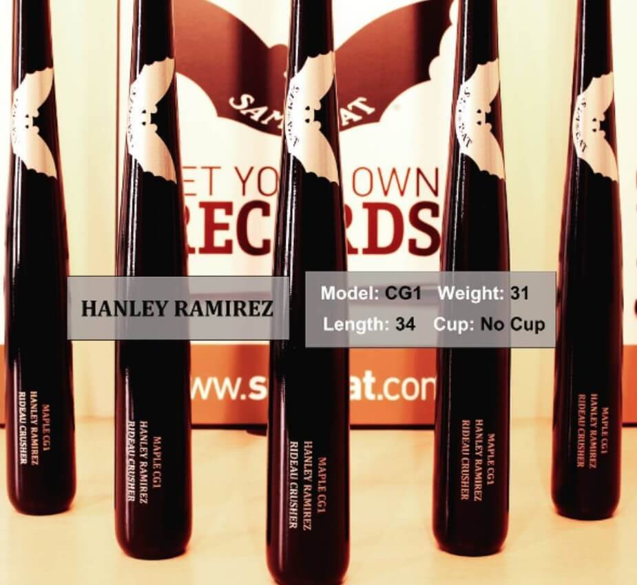 Hanley’s been swinging the Sam Bat CG1, 34 inch, 31 oz, Maple. According to Sam Bat: “The SAM BAT CG1 has the look of power with a very defined knob, strong, straight handle and short taper to the barrel.” You can get yours at the link.