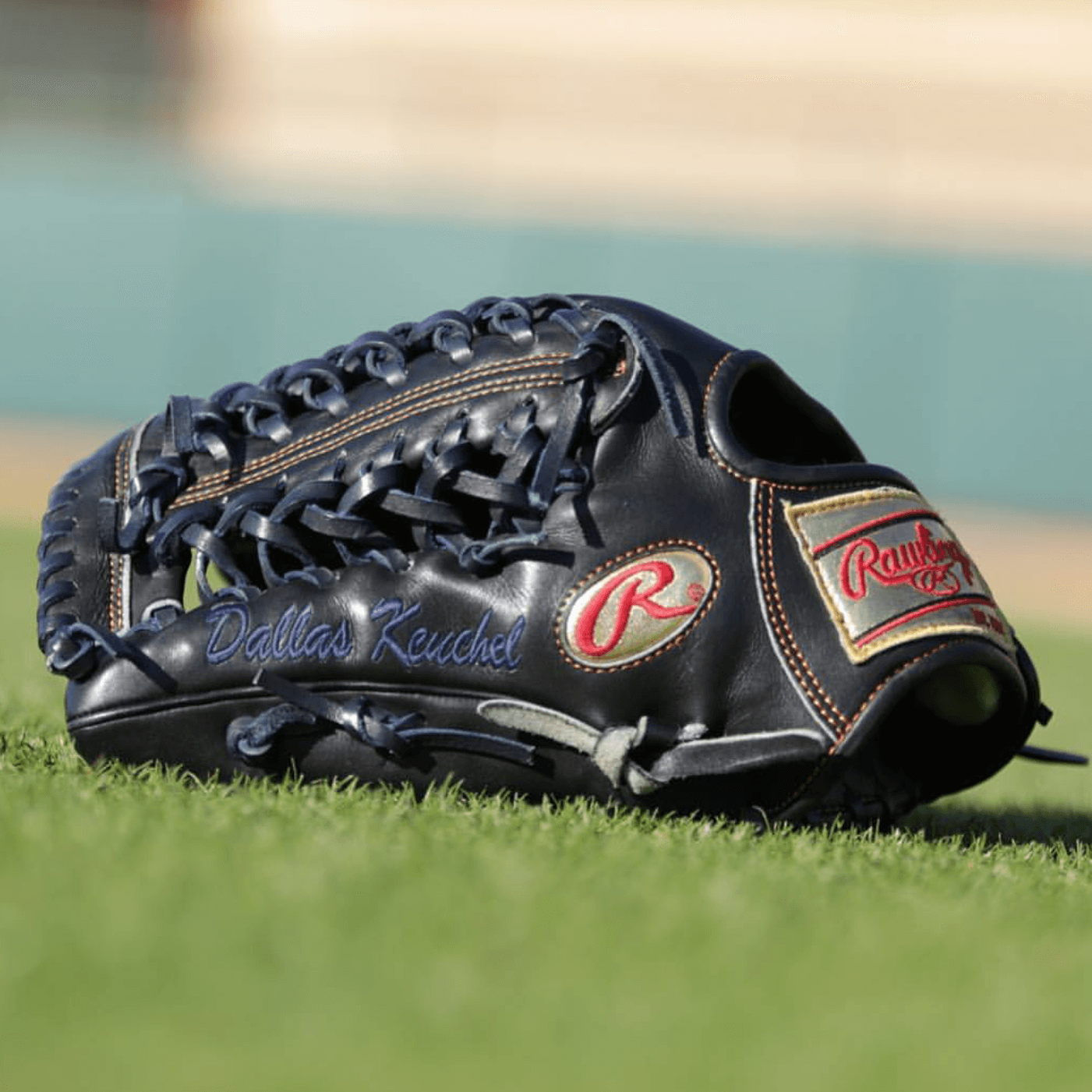 Dallas Keuchel got his own custom job on his Pro Preferred. He got the black, navy, and orange colorway to go with the gold labels that he earned himself. Keuchel also got the modified trapeze web. Get this glove (without gold labels) at the link.