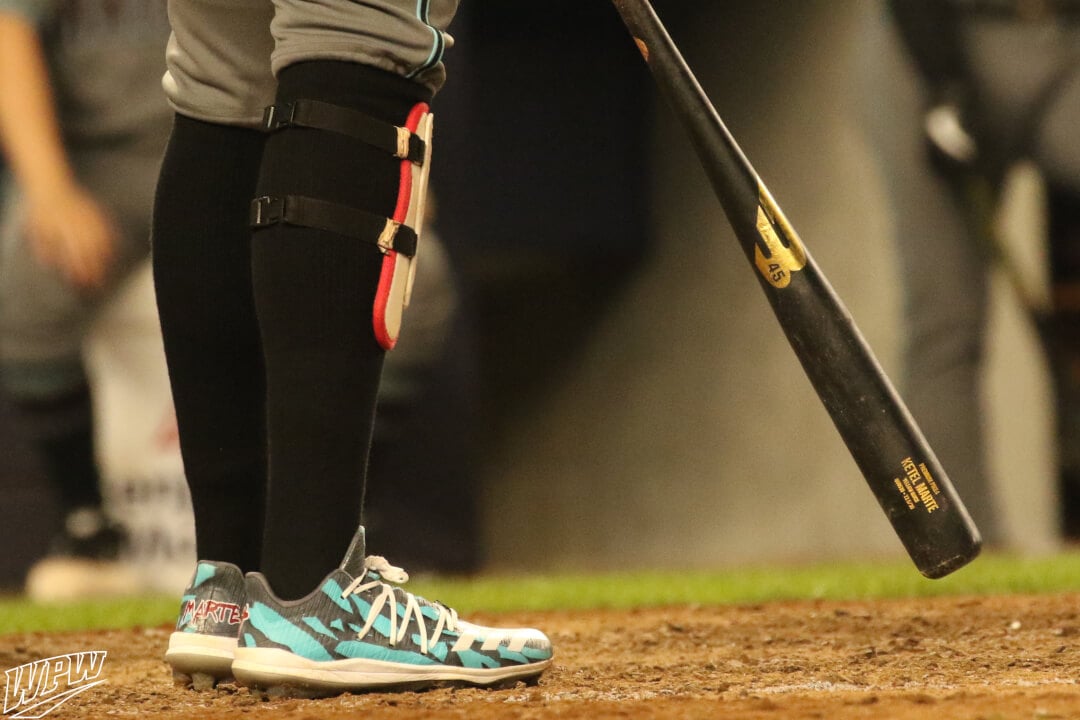 Ketel Marte is the rare player that wears two different brands for batting gloves. Along with his Easton Pro X, he’s also wearing the more popular adiZero 4.0 style that you can get on Baseball Express for $34. Marte’s red is available at the link.