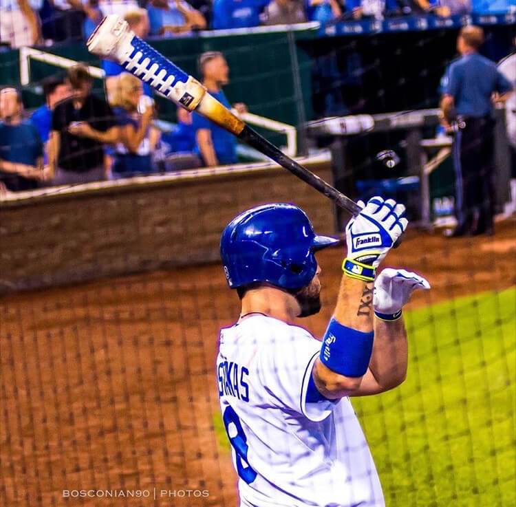 Moustakas uses the lighter Varo Arc bat weight, which is 12 oz. and features a longer design than Varo’s Cor design. Shop the model Moose uses at the link.